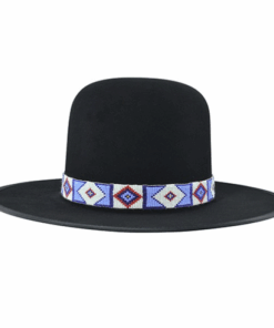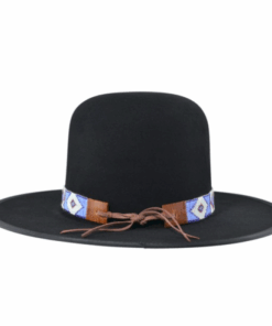 This Billy Jack cowboy hat is styled after the hat worn by Tom Laughlin from the film “Billy Jack”. Just like Billy Jack this hat features a 3 1/4″ bound edge brim and a 6″ open crown with a beautifully hand beaded hat band to give it a more authenticlook.