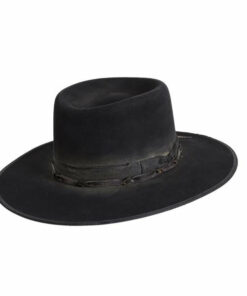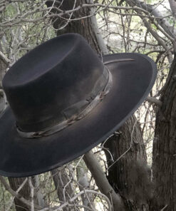 Inspired by the series Hell on Wheels this 1800s style cowboy hat is a great look. This was built on our original 1890s circa hat blocks, giving it the true look. Complete with our authentic period leather hat band made by one of our local saddlerys. The hat we offer here is exactly the same as the hat worn by Anson Mount who plays Cullen Bohannon. It is a real gunfighter hat! We went a step further and authentically distressed the hat.