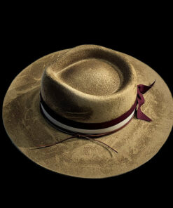 “Distressed Fedora with Red Striped Edge ” is hand-distressed, hand-dyed, and hand-torched, ensuring no two share the same color or design. Each piece is uniquely imperfect, with subtle variations from product images.
