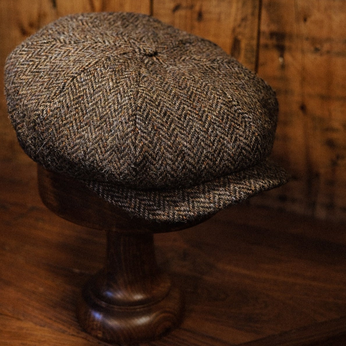 The “Eight Piece Grey Herringbone Linen Newsboy Cap”. Made from high-quality linen material, this cap features a unique eight-panel design that gives it a stylish and sophisticated look. Whether you’re dressing up for a special occasion or simply looking to elevate your everyday outfits, this newsboy cap is the perfect accessory. With its comfortable fit and timeless charm, it’s sure to become a staple in your collection.