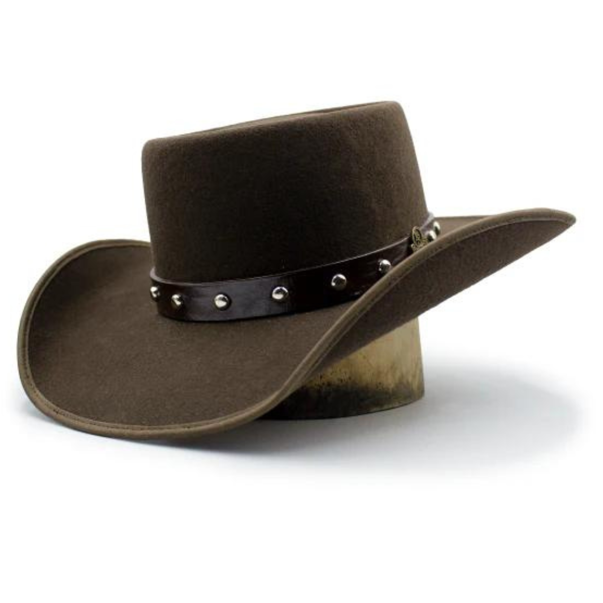 - Hatband: 1/2″ brown leather with buckle set.