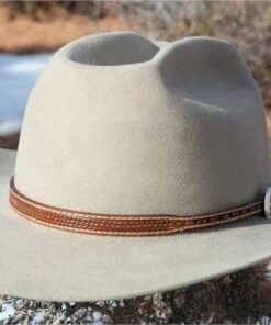 - Hatband: 1/2″ brown leather with buckle set.