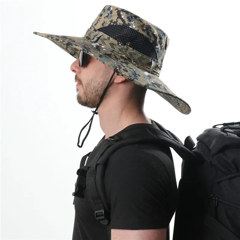 Embrace the outdoors in style with our Camouflage Large Brim Fishing Cap, perfect for men and women seeking both functionality and fashion. This versatile hat is designed to provide sun protection and comfort during various outdoor activities.