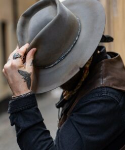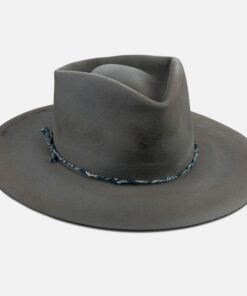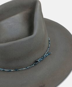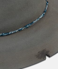 Handcrafted from antiqued light grey felt, and no two are exactly the same. A custom blue and white paisley band wraps around the lower crown serving as the finishing touches to a hat designed for the long haul.