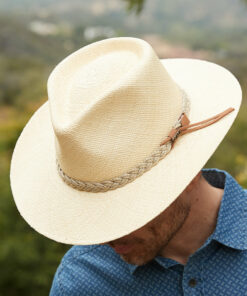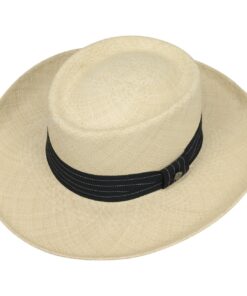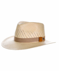 This classic piece features a medium-height teardrop crown and a 7–8 cm (2.75–3.15 in) snap brim with a refined woven edge finish. The look is completed with a 38 mm vintage grosgrain hatband, adding timeless charm and sophistication to your summer style.